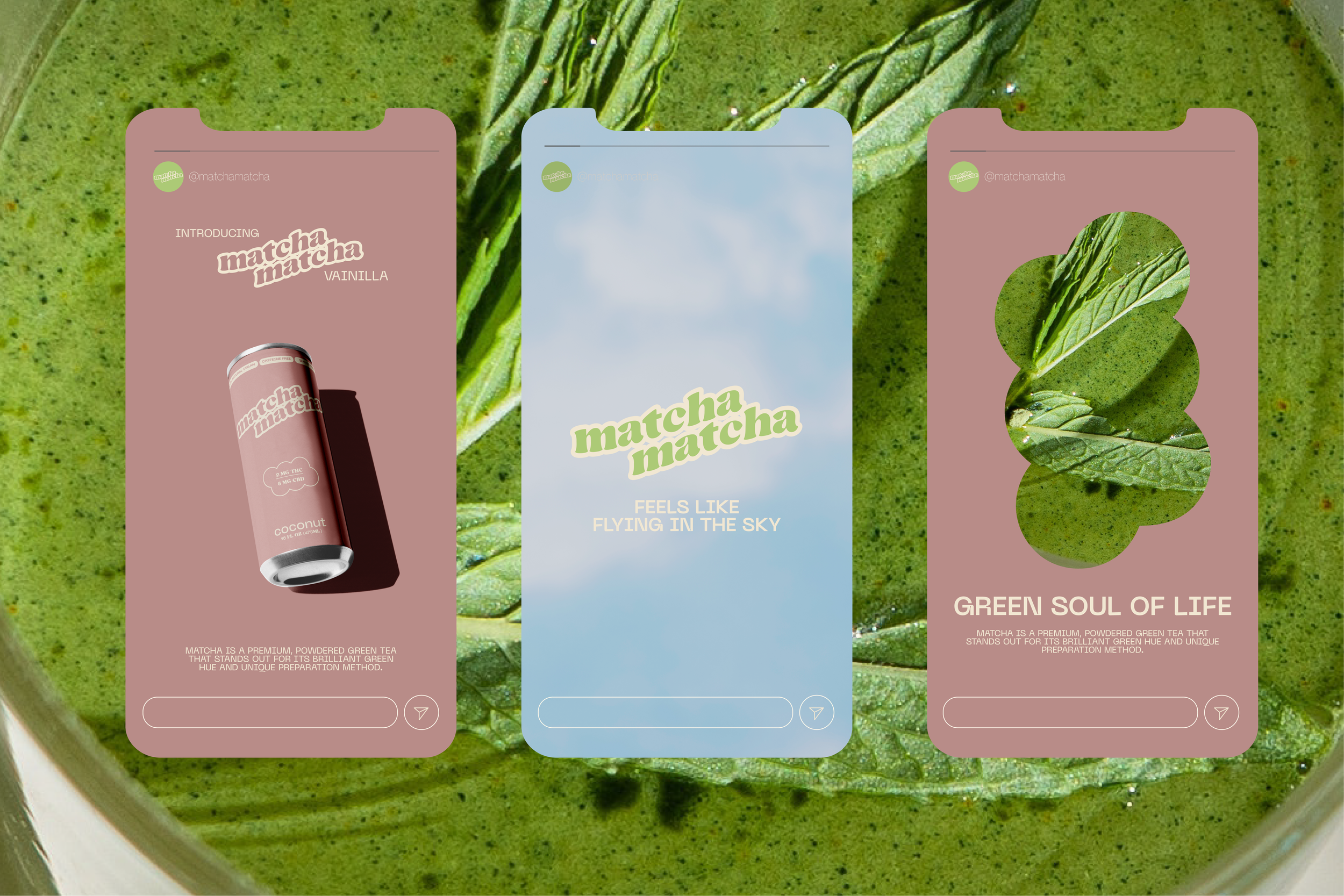Brand Identity, Packaging Design and Social media content for Matcha Matcha, a matcha brand and a true testament to clean living.